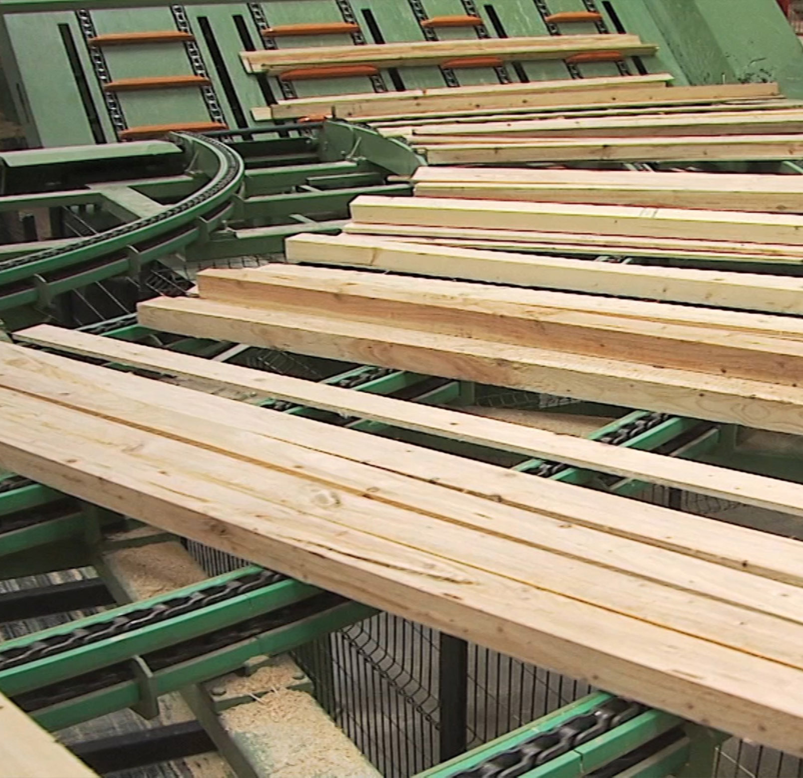 Le sciage se fait dans l’unité Canter par un premier passage des produits latéraux, puis le profilage, et enfin sciage du noyau : le délignage. Le Canter est un véritable centre d’usinage multifonctionnel, pouvant scier tous types de résineux, améliorant ainsi le rendement matière, et permettant un sciage plus précis.